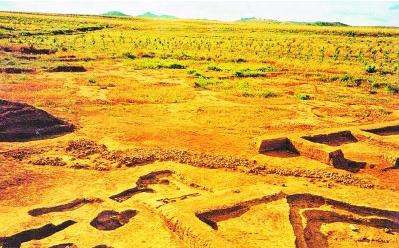 圖10查海遺址龍形堆石(由東南向西北)[選自《查海新石器時代聚落遺址發(fā)掘報告(下)》,遼寧省文物考古研究所編著,文物出版社,北京,2012年圖版五八,圖版五九]