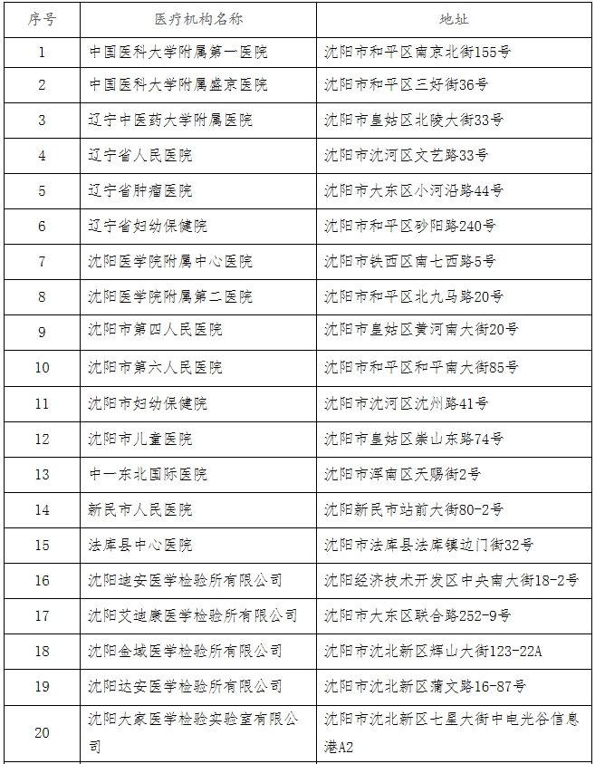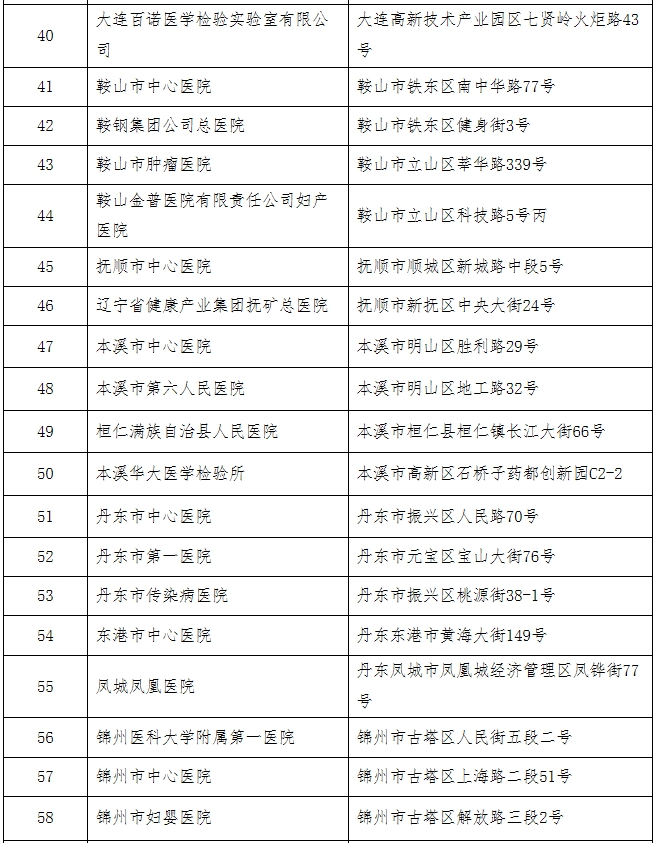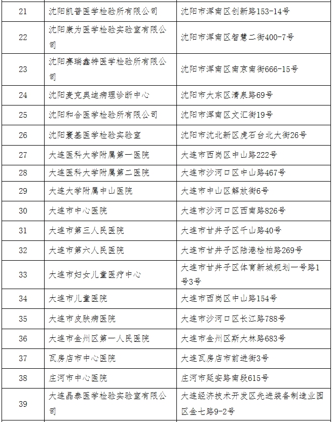 遼寧省具備新型冠狀病毒核酸檢測資質(zhì)的