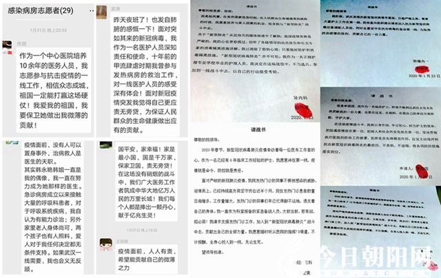根據(jù)疫情發(fā)展變化,1月31日,該院又成立了感染病房,用于收治確診患者,并分別向內科系統(tǒng)和護理系統(tǒng)下發(fā)了征調醫(yī)生、護理人員組建感染病房醫(yī)療組的通知,短短幾十分鐘,就有29名醫(yī)生、50多名護士主動報名請戰(zhàn),場面十分感人。一位年輕的女醫(yī)生說:“如果有需要,我隨叫隨到!我是一名中共黨員,必須沖在最前面。我也沒孩子,沒什么負擔。父母身體也好,不用我照顧。雖然現(xiàn)在我在急診,但是病房需要,咱們成立醫(yī)療組,我也報名!”