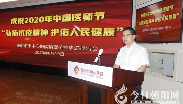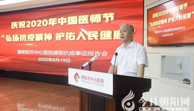 8月19日下午,遼寧省朝陽市中心醫(yī)院慶祝2020年中國醫(yī)師節(jié)暨援鄂抗疫事跡報告會在外科樓四樓多功能廳舉行。市衛(wèi)健委副主任徐萬江出席會議并講話。院領(lǐng)導班子成員,臨床、醫(yī)技、職能科室負責同志及部分醫(yī)師代表參加了會議。會議由副院長楊振江主持。