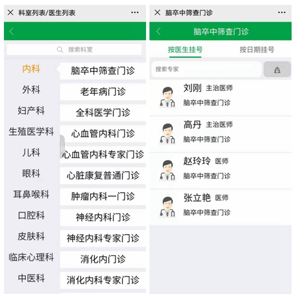 選擇就診科室或搜索科室名字,選擇醫(yī)生或選擇日期掛號。