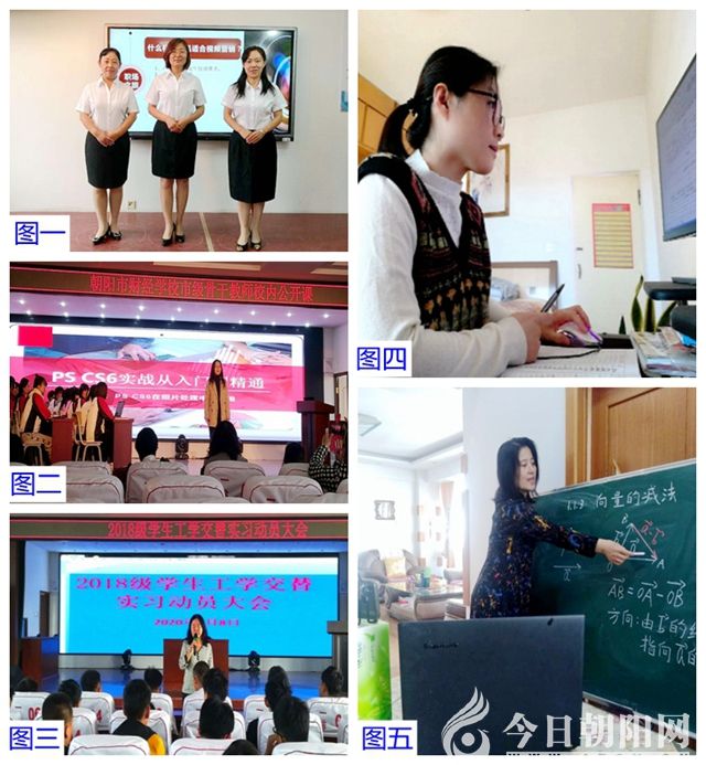 ?。▓D一:教師獲得省教學(xué)能力大賽一等獎;圖二:骨干教師講授公開課;圖三:安排學(xué)生實習(xí)召開動員大會;圖四:校醫(yī)疫情期間每天統(tǒng)計上報防疫信息;圖五:疫情期間線上授課)