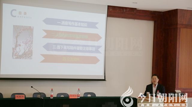 為全面提升學校宣傳工作力度,進一步提高廣大信息員的綜合素質(zhì)和業(yè)務水平,打造一支素質(zhì)強、本領硬的宣傳隊伍,5月26日下午,遼寧省朝陽工程技術學校在十號樓階梯教室召開了2021年度宣傳工作會議暨信息員培訓會,特別邀請了資深媒體人劉貴成,進行新聞寫作方面的專業(yè)知識培訓。黨委書記、校長武鐵兵出席會議并講話。黨辦和宣傳中心全體人員、各科室負責人及本科室信息員、部分青年教師參加了會議。會議由宣傳中心主任陳桂華主持。