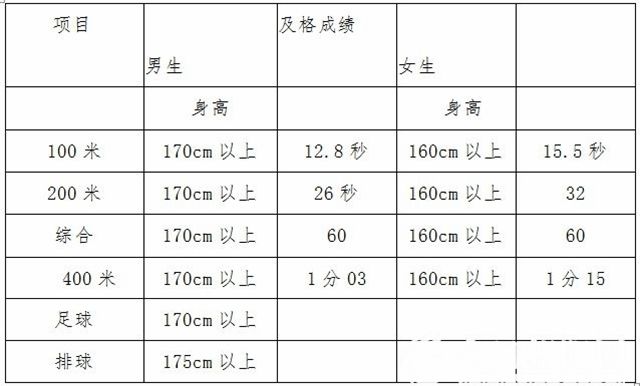 5.身高符合各體育專項(xiàng)要求(見下表)