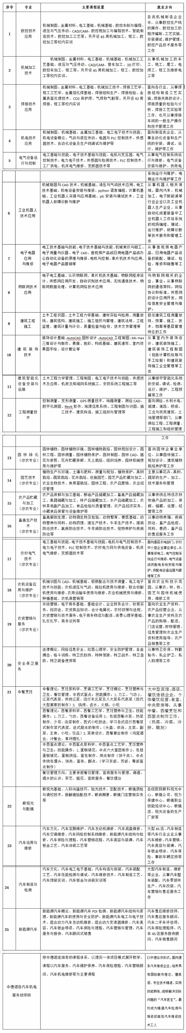 1.“3+2”中高職一體化:即前三年在工校就讀,后兩年到對應(yīng)的高職院校就讀;學(xué)生學(xué)習(xí)期滿,成績合格可獲得大專畢業(yè)證書。