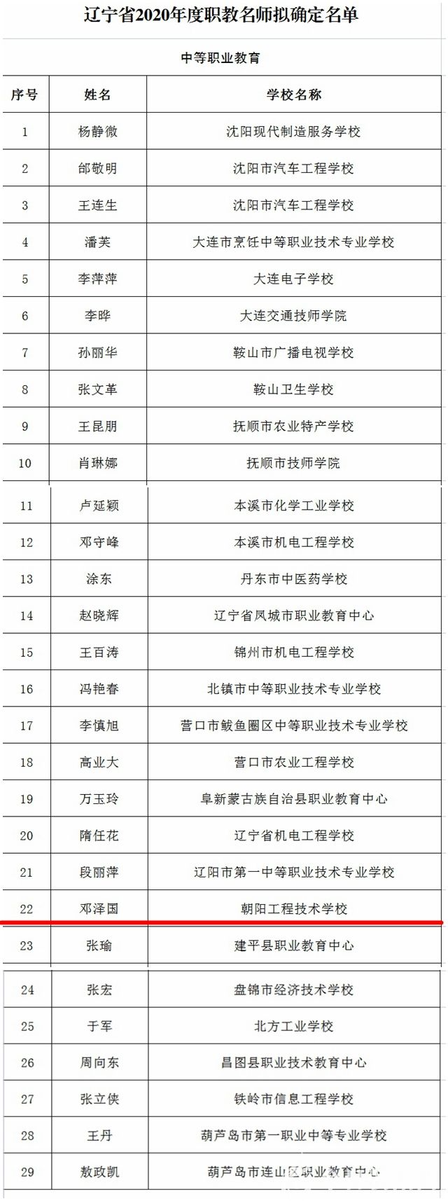 朝陽工校教師鄧澤國入選遼寧省2020年度職教名師