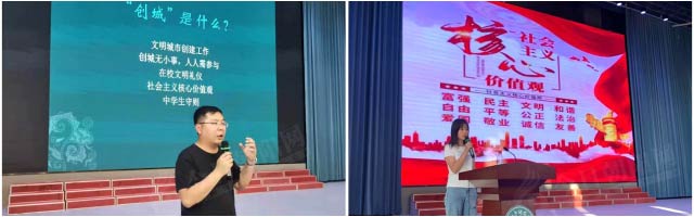 除此之外,還開設(shè)了共青團(tuán)團(tuán)史介紹、社團(tuán)活動、學(xué)生行為規(guī)范、社交禮儀、升學(xué)前景、就業(yè)需求、舍務(wù)管理等課程。同時,還讓學(xué)生們了解朝陽市創(chuàng)建文明城市工作的重要性,引導(dǎo)同學(xué)們牢記社會主義核心價值觀,積極加入志愿服務(wù)隊(duì)伍,一起為創(chuàng)建文明城市貢獻(xiàn)自己的力量。