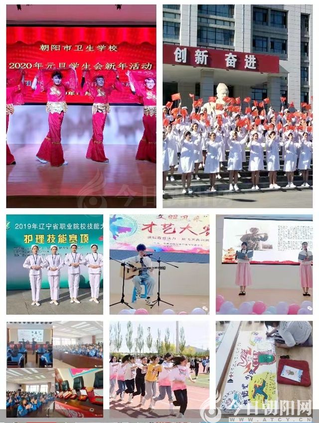 學?;顒雨嚨佚R全,活動形式多姿多彩。班級設(shè)有板報、圖書角;校園設(shè)有展板和櫥窗;團委開通“衛(wèi)校團團”公眾號;同時發(fā)揮校園廣播站、校報等育人平臺的引領(lǐng)作用;積極拓展殘疾兒童中心、燕都長壽敬老院、朝陽市博物館等多家教育基地;組織舞蹈隊、跆拳道隊、文學社、攝影之家等大力開展社團活動。真正做到板報櫥窗出新意、廣播校報引方向、網(wǎng)絡(luò)平臺成常態(tài)、活動場所廣拓展的陣地建設(shè)特色,陶冶了學生情操、美化了學生心靈、啟迪了學生智慧。