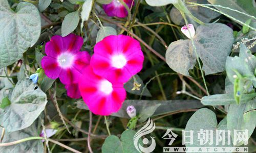 兒時(shí)的農(nóng)家院,沒有現(xiàn)在這樣高的圍墻,多數(shù)人家房子連著大地,分不清哪是院子,哪是草地,那是真正的人與大自然和諧。沒有院墻的院子,常常會(huì)受到外界的影響,在草地上采食的牛羊,會(huì)隨意地到院子里串門,林間的野雞、野兔,會(huì)到院子里同家雞、家兔爭(zhēng)奪食物。為防止小動(dòng)物們對(duì)農(nóng)家院的騷擾,父輩們往往要用樹枝子及農(nóng)作物秸稈做個(gè)臨時(shí)墻,這就是書上說的籬笆,鄉(xiāng)親們都叫它障子,在障子邊,人們都要種一些藤蔓類植物,如南瓜、豆角、扁豆等,既有收獲,又會(huì)因植物嫩綠的藤蔓,形狀各異的綠葉,五顏六色的花兒,將障子裝點(diǎn)成一道掛著飄香瓜果的透體墻,為農(nóng)家小院增添了無(wú)限的生機(jī)。這個(gè)時(shí)候,牽?;ú徽?qǐng)自來,會(huì)同豆角、扁豆等一起生長(zhǎng),但因其生長(zhǎng)速度快,生命力頑強(qiáng),當(dāng)別的植物還沒長(zhǎng)多高,牽?;ㄒ呀?jīng)迅速地占領(lǐng)了有利地形,緊緊纏繞著構(gòu)成柵欄的那些物體,舒展著大大的葉子,五顏六色絢麗的花朵盛開了,那個(gè)時(shí)候的柵欄,就是地道的花墻。