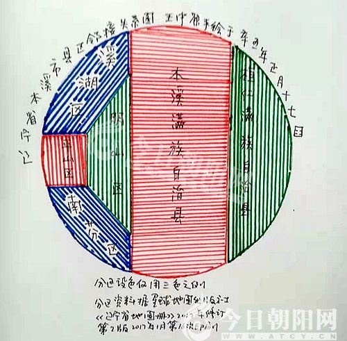 今天畫的是《遼寧省本溪市縣區(qū)鄰接關(guān)系圖》,溪湖區(qū)與本溪滿族自治縣的共同邊界特短,易被忽略。該市有兩個(gè)自治縣、四個(gè)市轄區(qū),我用了三種顏色。我所依據(jù)的星球地圖出版社的地圖冊(cè)用了五種顏色。為什么要用五種顏色呢?該書的《遼寧政區(qū)》也是五種顏色。這是我的困惑,也是今天寫作本文的目的。該社此前的版本值得一說(shuō),四區(qū)一體,用綠色,桓仁滿族自治縣也是綠色;本溪滿族自治縣用粉紅。全市僅用兩色,絕無(wú)僅有啊!