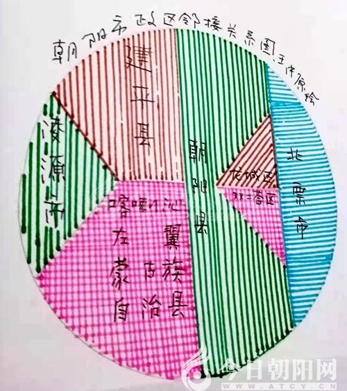 比如,朝陽縣的鄰居按順時針方向依次是:北票、龍城、雙塔、喀左、建平,唯獨不與凌源相鄰。再如,喀左的鄰居是凌源、建平、朝陽縣,不與北票、龍城、雙塔為鄰。另如龍城的鄰居是朝陽縣、北票、雙塔……