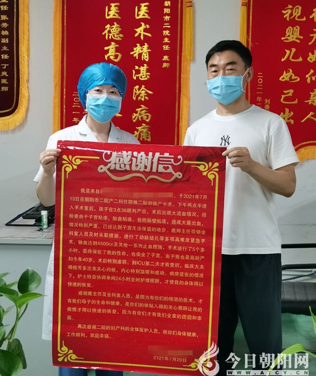 近日,遼寧省朝陽(yáng)市第二醫(yī)院圍產(chǎn)二科成功搶救了一名39歲的產(chǎn)后大出血產(chǎn)婦。該產(chǎn)婦做過(guò)一次剖宮產(chǎn),子宮與多個(gè)臟器致密粘連,失血嚴(yán)重,經(jīng)過(guò)產(chǎn)科聯(lián)合多學(xué)科全力以赴地奮力搶救,終于轉(zhuǎn)危為安,并在極大風(fēng)險(xiǎn)的情況下,成功保住了患者子宮。目前患者已康復(fù)出院,其家屬送來(lái)了錦旗和感謝信表達(dá)濃濃謝意。