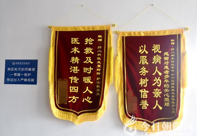 “視病人為親人,以服務(wù)樹(shù)信譽(yù)”“搶救及時(shí)暖人心,醫(yī)術(shù)精湛傳四方”。近日,遼寧省朝陽(yáng)市第四醫(yī)院肝病二科收到了患者劉某某家屬送來(lái)的兩面錦旗,感謝科室全體醫(yī)護(hù)人員多年來(lái)對(duì)患者的全力救治與精心照顧。