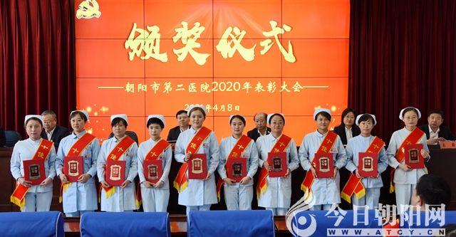 接下來進入了頒獎儀式。副院長王巖宣讀了《朝陽市第二醫(yī)院2020年度先進集體和先進個人名單及獎勵標準》,院領(lǐng)導為獲得國家級、省級、市級、院級各類榮譽的集體和個人進行了頒獎。希望獲得獎勵的集體和個人珍惜榮譽,再接再厲;希望全院職工以先進為榜樣,以更加飽滿的熱情投入到工作中去,為推動醫(yī)院高質(zhì)量發(fā)展貢獻力量。