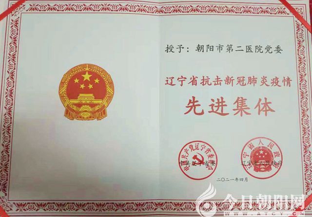祝賀!朝陽市第二醫(yī)院榮獲遼寧省抗擊新冠肺炎疫情先進(jìn)集體榮譽(yù)稱號