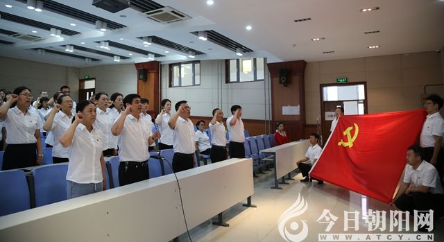 黨委書記、校長武鐵兵帶領(lǐng)全體黨員面向黨旗重溫入黨誓詞。