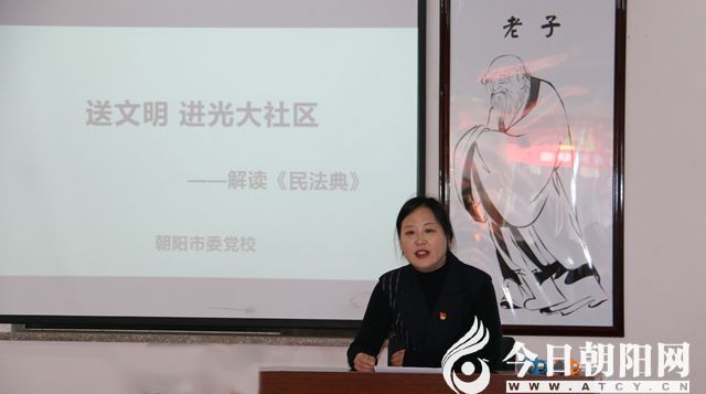 11月30日上午,遼寧省朝陽市雙塔區(qū)龍山街道光大社區(qū)黨總支、國家稅務(wù)總局朝陽市稅務(wù)局第七黨支部、朝陽市委黨?;鶎狱h支部聯(lián)合舉辦了“送文明進(jìn)社區(qū)——解讀《民法典》”講座。光大社區(qū)、朝陽市稅務(wù)局、市委黨校相關(guān)同志一起聆聽了講座,共同學(xué)習(xí)體悟了《民法典》對(duì)全面加強(qiáng)法治社會(huì)建設(shè)的重大意義。