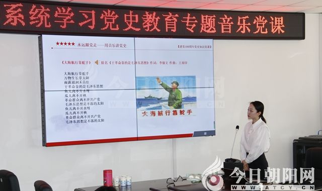 4月9日,遼寧省朝陽市政府17樓會議室座無虛席,遼寧朝陽開放大學(xué)教師姜姿羽為朝陽市社科聯(lián)、團市委、工商聯(lián)、紅十字會等單位的同志,講授了《永遠跟黨走——用音樂講黨史》主題黨課,一曲曲經(jīng)典紅歌,讓現(xiàn)場聽眾心潮澎湃。