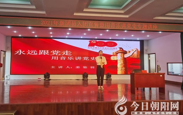 5月11日下午,遼寧省朝陽市財經(jīng)學(xué)校2021年新團員入團宣誓暨用音樂講黨史專題教育講座在六樓報告廳舉行。校長曹陽,副校長常萬勝、韓杰,相關(guān)科室負責(zé)人以及全體青年教師、團員參加了活動?;顒友埩顺柺形厣h史宣講團成員、2020年度朝陽青年五四獎?wù)芦@得者、朝陽開放大學(xué)教師姜姿羽擔(dān)任主講。