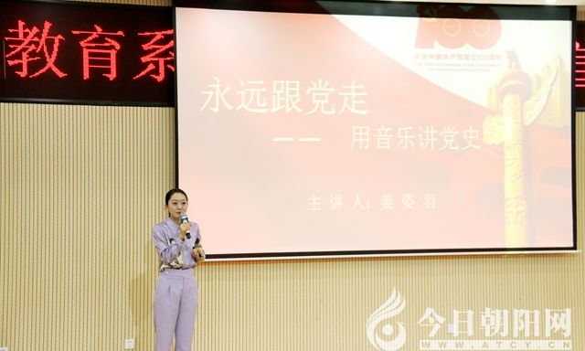 6月15日,在中國共產(chǎn)黨誕辰100周年即將到來之際,遼寧省朝陽師范高等??茖W(xué)校大學(xué)生活動中心大廳座無虛席,朝陽開放大學(xué)教師姜姿羽為部分師生講授了《永遠(yuǎn)跟黨走——用音樂講黨史》主題黨課。200余名師生在優(yōu)美的音樂聲中重溫黨史,將紅色基因通過藝術(shù)的形式融入到血脈之中。