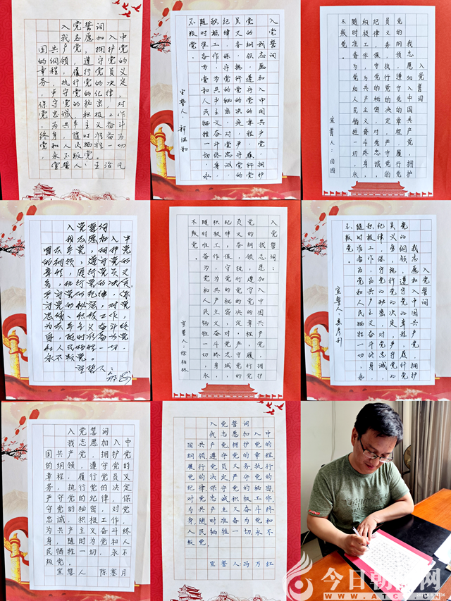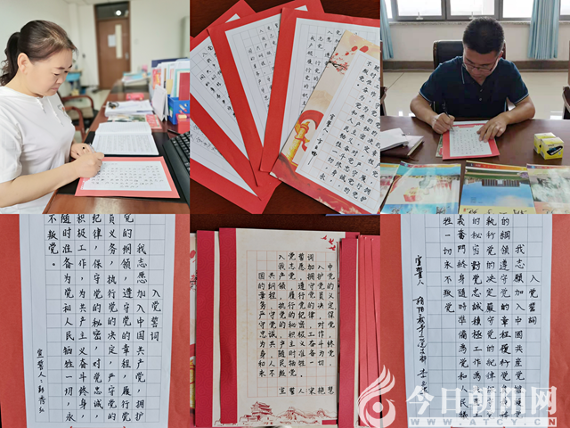 為慶祝建黨100周年,結(jié)合黨史學(xué)習(xí)教育,近日,遼寧省朝陽(yáng)工程技術(shù)學(xué)校各黨支部組織黨員開展了“翰墨寫初心,牢記入黨誓詞”主題黨日活動(dòng)。