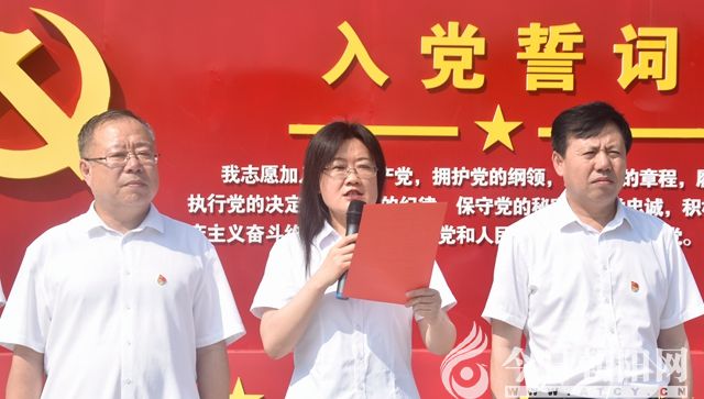 上午9時,入黨宣誓儀式在莊嚴(yán)的國歌聲中開幕。院紀(jì)委書記王淑敏宣讀了新黨員名單和預(yù)備黨員轉(zhuǎn)正名單。