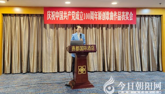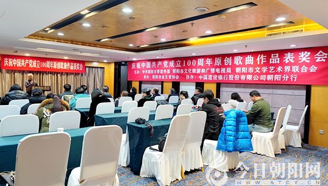 12月31日,由中共朝陽市委宣傳部、朝陽市文化旅游和廣播電視局、朝陽市文學藝術界聯(lián)合會主辦,朝陽市音樂家協(xié)會承辦,中國建設銀行股份有限公司朝陽分行協(xié)辦的慶祝中國共產(chǎn)黨成立100周年原創(chuàng)歌曲作品表獎會在燕都國際酒店舉行。市委宣傳部、市文旅廣電局、市文聯(lián)、市音協(xié)有關領導及部分獲獎詞曲作家、音樂人參加了會議。會議由市音協(xié)副主席兼秘書長姜姿羽主持。