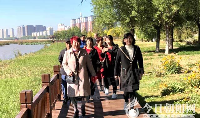 8時30分,一行人來到朝陽市燕都大橋東北側(cè)的音樂噴泉廣場,沿朝陽大凌河玉龍湖北岸觀光瀏覽。欣賞著家鄉(xiāng)的美景,朗誦自己創(chuàng)作的詩詞,載歌載舞,歌頌偉大的中國共產(chǎn)黨,歌頌偉大的祖國。
