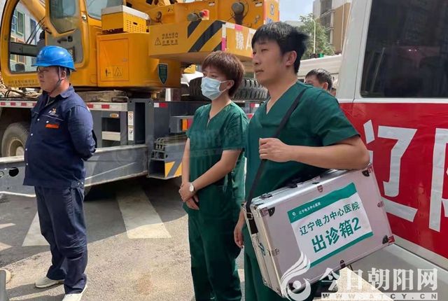 遼寧電力中心醫(yī)院的醫(yī)護(hù)人員站在安全圍欄外,肩挎急救箱,為不可預(yù)知的突發(fā)情況時(shí)刻準(zhǔn)備著。搶修隊(duì)員將白毛巾用水打濕,圍在脖子上或者是直接敷在安全帽的上面,被汗水浸濕的工作服如水洗一般,汗滴不時(shí)地順著安全帽沿飄落下來,在烈日的映射下,它竟然有了五彩斑斕的光暈和顏色。