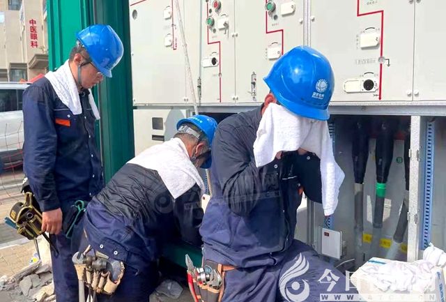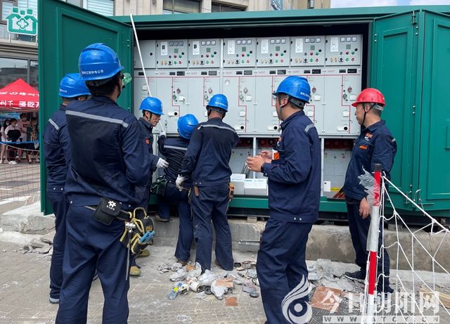 “大家預(yù)備啊!1,2,起……”一陣響亮有力的口號聲,吸引了周圍人群的目光。一群頭戴安全帽,被汗水浸透衣服的電力搶修人員正合力將一臺全新的環(huán)網(wǎng)柜進(jìn)出線單元就位。烈日下,緊張奮戰(zhàn)的十幾個(gè)身影正是來自國網(wǎng)遼寧省電力公司支援河南的搶修人員。