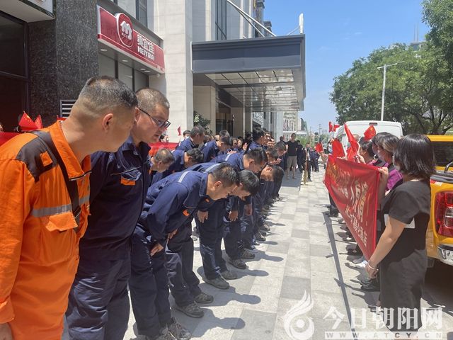 在迎風(fēng)舞動(dòng)的紅旗中,朝陽(yáng)供電公司全體搶險(xiǎn)隊(duì)員分列兩行,向送行的群眾深深地鞠躬致敬!