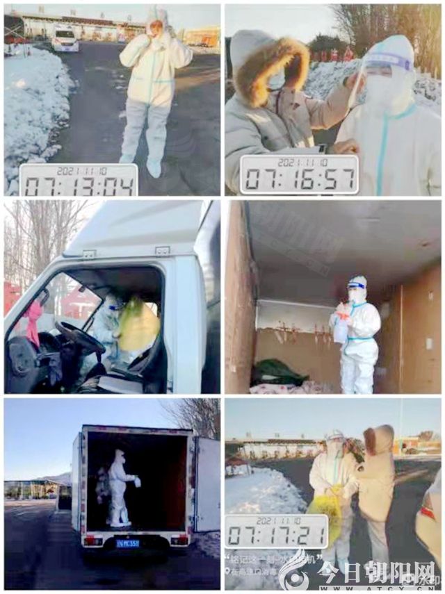 11月9日凌晨5時左右,康旭蘭、王玉華、王玉霞三人頂著夜色趕到醫(yī)院,帶上所用物品隨醫(yī)院車輛來到朝陽南高速路口。配送物資的車輛已經下了高速,司機脫掉隔離服被急救高壓艙車接走,進行核酸檢測,然后送到指定地點進行隔離。車輛及物品的消毒工作就交給了康旭蘭、王玉華、王玉霞三人。她們三人做好自身防護后對車的駕駛室、后備箱、車身、車輪、車底都進行了徹底噴灑消毒。噴灑消毒完畢,半小時之后再次進行了擦拭消毒。經過一番忙碌,八時多三人收集好產生的垃圾返回醫(yī)院,把垃圾投放到指定的醫(yī)療垃圾點,圓滿地完成了此項任務。