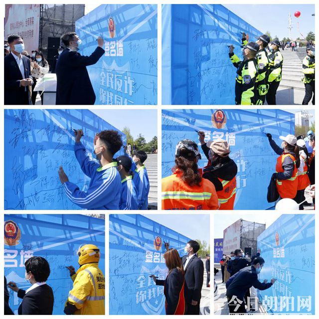 儀式結(jié)束后,進(jìn)行了“反詐人民戰(zhàn)爭”千人簽名活動(dòng)。隨后,市領(lǐng)導(dǎo)到宣傳展區(qū)視察,并與現(xiàn)場群眾交流互動(dòng)。