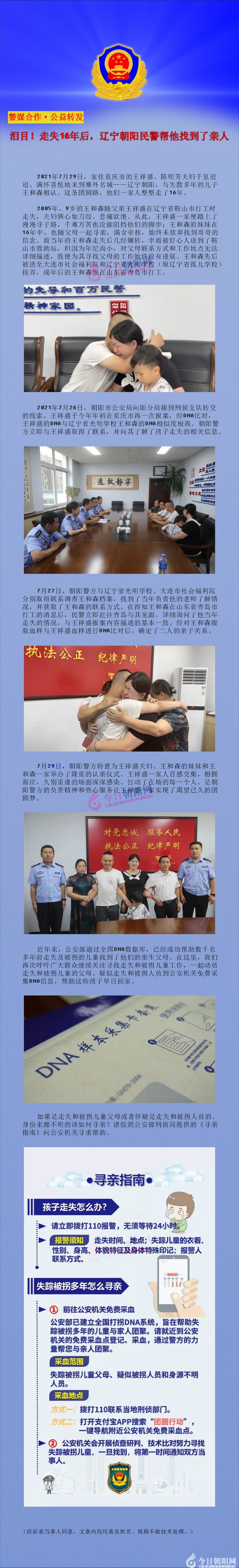 摘要:2021年7月29日,家住重慶市的王祥盛、陳明芳夫婦千里迢迢、滿懷喜悅地來到塞外名城——遼寧朝陽,與失散多年的兒子王和森相認(rèn)。 來源:朝陽微警事 原文鏈接:團(tuán)圓丨走失16年后,遼寧朝陽民警幫他找到了親人! [視覺統(tǒng)籌 冠群 編輯 立軍 編審 春語] 【本網(wǎng)聲明】