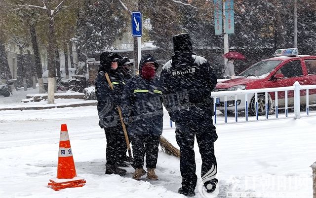 這場雪下得洋洋灑灑,小朋友們紛紛冒寒出門堆雪人、打雪仗,玩的不亦樂乎;交警站在大雪紛飛的路口指揮著交通;環(huán)衛(wèi)工人清掃著路面的積雪;外賣小哥小心翼翼地騎著電動(dòng)車送著餐;各色車輛在厚厚的積雪路面上如蝸牛般有序緩慢前行……雪中的一切似乎都慢了下來,只有雪花像一只只精靈在歡舞。