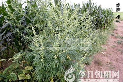 線麻,又名火麻、繩麻等。桑科植物,一年生草本。莖梢及中部呈方形,莖部圓形,皮粗糙有溝紋,掌狀復(fù)葉,卵形瘦果。不耐旱,不耐澇,適宜于肥沃土壤。