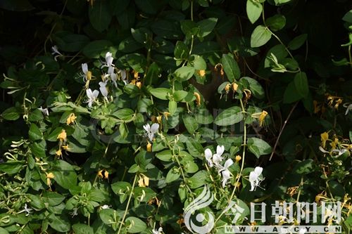初中同學(xué)尹其和是位養(yǎng)花高手,他家的過(guò)道旁栽植了一排匍匐生長(zhǎng)的植物,構(gòu)成了一段綠色圍墻,美極了。這種植物花的顏色有黃有白,別有風(fēng)采,問(wèn)了一下百度,才知道叫金銀花。