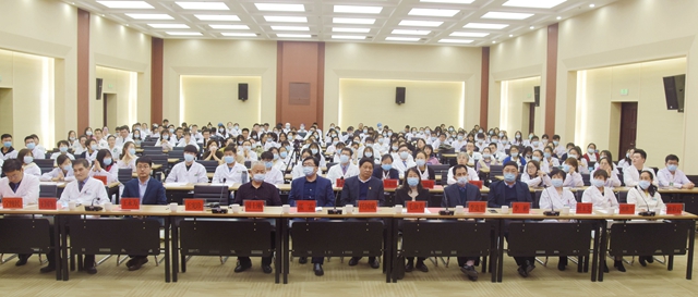 承德醫(yī)學(xué)院2016級實習(xí)生史涵菲在發(fā)言中,回顧了自己在市中心醫(yī)院的成長歷程及各科室教師的悉心教導(dǎo)。她說:“醫(yī)院給我們的不僅僅是學(xué)習(xí)生活的良好條件,更是一種灌注于我們血液之中的大醫(yī)精神。我們躊躇滿志,期待有一天成為棟梁之材。”
