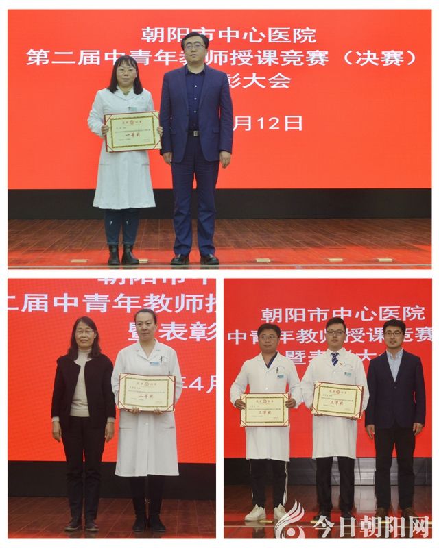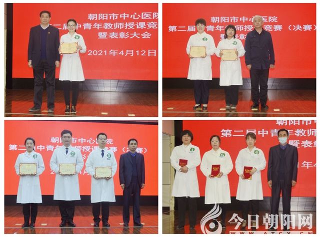 院長國士剛宣讀了《關(guān)于表彰朝陽市中心醫(yī)院第二屆中青年教師授課競賽獲獎人員的通知》和《承德醫(yī)學(xué)院關(guān)于對臨床教師進(jìn)行課堂教學(xué)設(shè)計方案大賽表彰的通知》。其中,神經(jīng)內(nèi)一科高丹獲得授課競賽一等獎,口腔科張麗媛、產(chǎn)科張金磊獲得二等獎,麻醉科梁迪、超聲科董立陽、神經(jīng)內(nèi)三科王博獲得三等獎,生殖醫(yī)學(xué)科徐晨、病理科楊曉林、心內(nèi)二科張麗莉獲得優(yōu)秀獎;內(nèi)分泌科程芳獲得承德醫(yī)學(xué)院臨床教師課堂設(shè)計方案大賽一等獎,婦產(chǎn)科李馨雅獲得二等獎,兒科王孝建、劉海生獲得三等獎。領(lǐng)導(dǎo)們?yōu)楂@獎選手頒發(fā)了榮譽證書并合影留念。