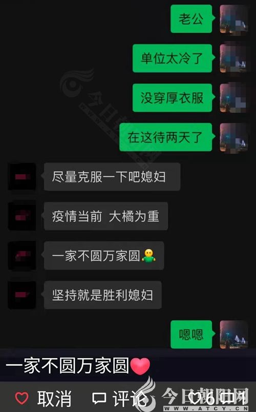 兩天后的夜晚,睡前翻看朋友圈時,看到一則夫妻對話,竟然是周曉晴的。熾熱的“紅心”旁寫著“一家不圓萬家圓”,我的心頓時為之一動,連忙打開圖片,細瞧小夫妻對話,字字珠璣,看后讓我猛然想起梁啟超那句“少年強則國強”,年輕的一代如此忠肝義膽,何懼重重考驗!