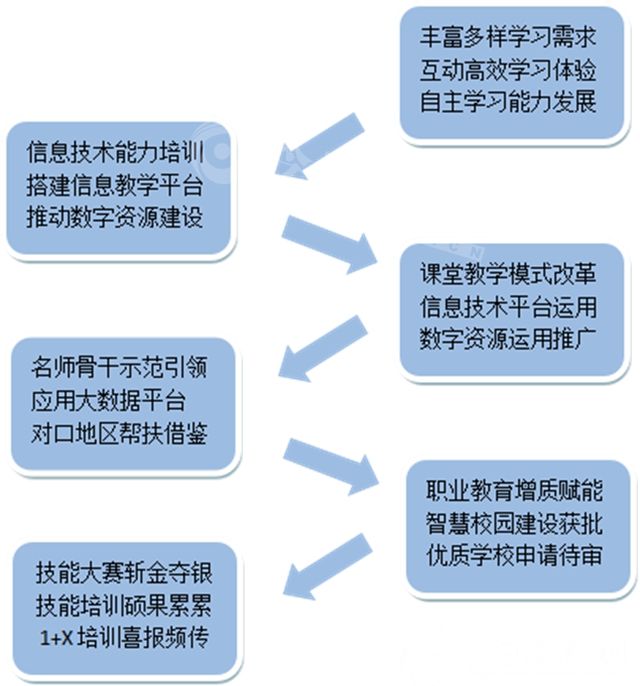 朝陽工程技術(shù)學(xué)校教師信息技術(shù)能力提升形成了“三個(gè)三”的特色模式,即三強(qiáng)筑基、三力合一、三石驗(yàn)效。