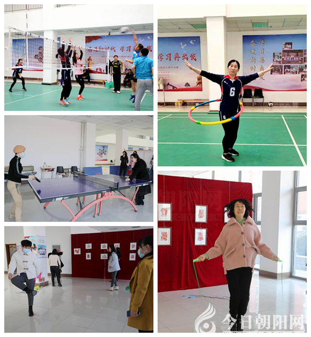 下午,系列活動正式開始。副校長陳塞月和女教工們一起參加了各項活動,武鐵兵校長及很多男教工也來加油助陣,活動現(xiàn)場氣氛活躍,歡聲陣陣。在學(xué)校報告廳一樓,進行了氣排球、乒乓球、毽球、跳繩等運動項目比賽;在十號樓傳統(tǒng)文化教育基地,進行了書法展示及品茶活動。全校女教工精神飽滿、興味盎然地參與到各項活動中,充分展示了格調(diào)高雅、多才多藝的巾幗風(fēng)采。