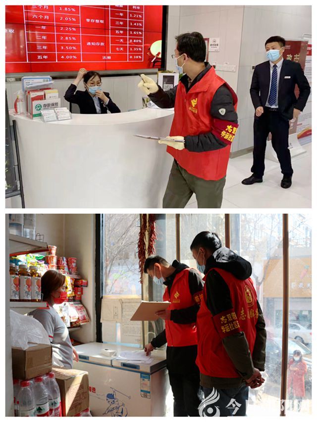 一大早,由韓杰、尹浩等11名同志組成的社區(qū)志愿服務隊集結完畢,在社區(qū)的組織安排下,全體同志做好個人防護,身穿印有“志愿服務”字樣的紅色馬甲,迎著料峭的春風,分為5組,對社區(qū)所轄商鋪逐戶做了摸排走訪。對允許營業(yè)的酒店、商鋪等場所督查疫情防控所需物資是否齊備、營業(yè)執(zhí)照是否齊全、是否逐人查驗健康碼等,并詳細做好記錄。