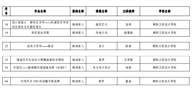 ——朝陽工校6項(xiàng)案例入選遼寧省職業(yè)院校課程思政教學(xué)典型案例