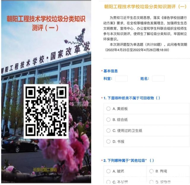 摘要:4月23日,遼寧省朝陽工程技術學校宣傳中心、辦公室和學生科組織全校師生參與《垃圾分類知識》測評活動。