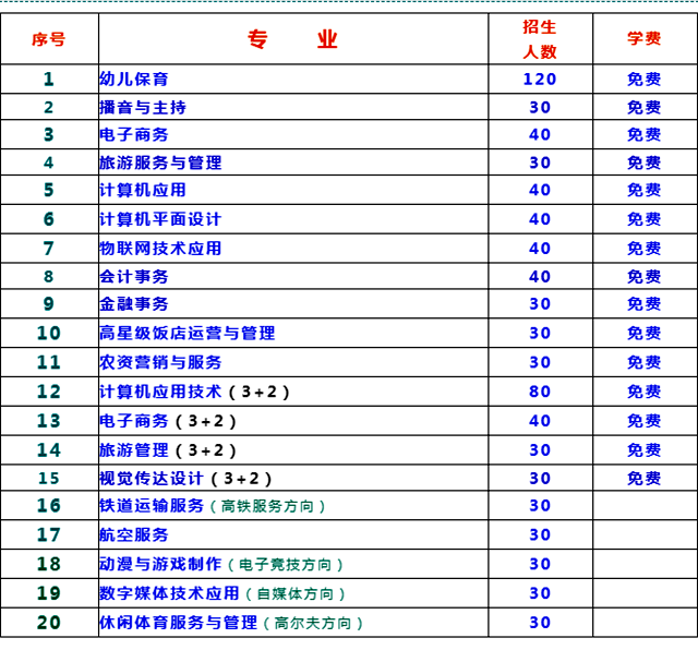 1.普通中專各專業(yè)學(xué)制三年,均可選擇就業(yè)或升學(xué)。