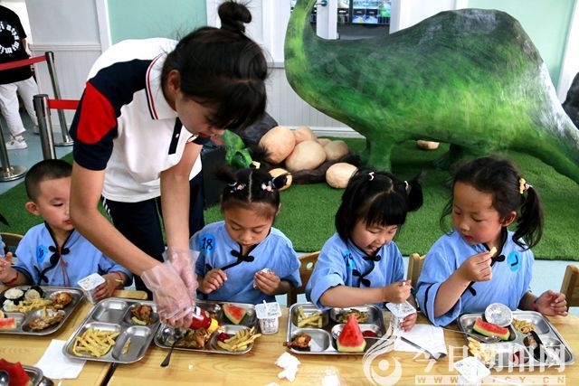 活動進行到中午,小朋友們意猶未盡地洗凈小手進入大廳,開始享受幼兒園精心為他們準備的節(jié)日美餐。