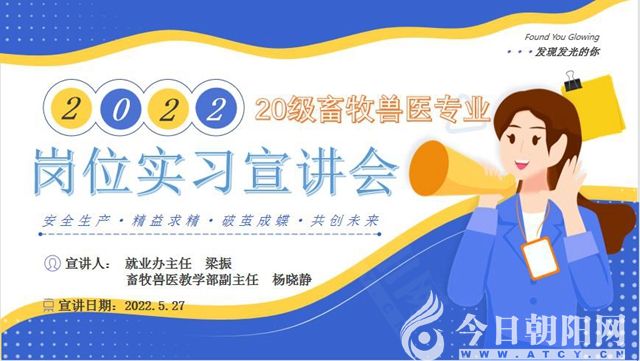 為全面落實實踐育人的宗旨,深入了解企業(yè)職場環(huán)境,提前規(guī)劃學生崗位實習和就業(yè)方向,積極為高新區(qū)企業(yè)輸送優(yōu)秀人才,結合學校崗位實習工作安排,5月27日,遼寧省朝陽工程技術學校畜牧獸醫(yī)教學部舉行了崗位實習宣講會。就業(yè)辦主任梁振,畜牧獸醫(yī)教學部主任馮會中、副主任楊曉靜及2020級畜牧獸醫(yī)專業(yè)全體學生參加了會議。