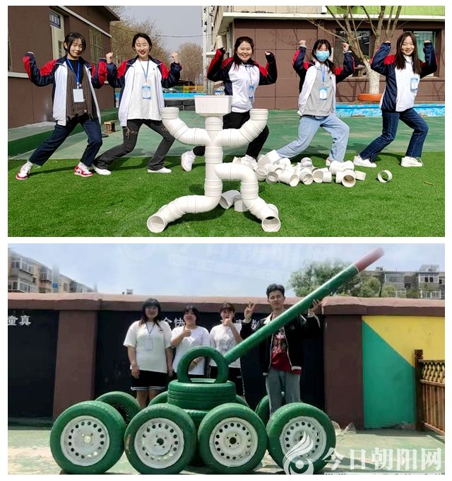 在專業(yè)部老師的指導(dǎo)幫助下,同學(xué)們?yōu)橛變簣@精心制作了教具、玩具,還參與了環(huán)境創(chuàng)設(shè)。同學(xué)們?yōu)橛變簣@做的三維立體恐龍成了幼兒園里一道獨(dú)特的風(fēng)景線,戶外的輪胎小拉車更是深受小朋友的喜愛,園區(qū)里擺放的pvc管和輪胎創(chuàng)意造型,為幼兒園增添了許多童趣。