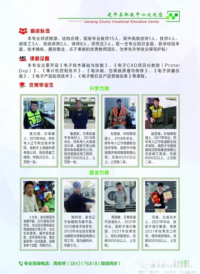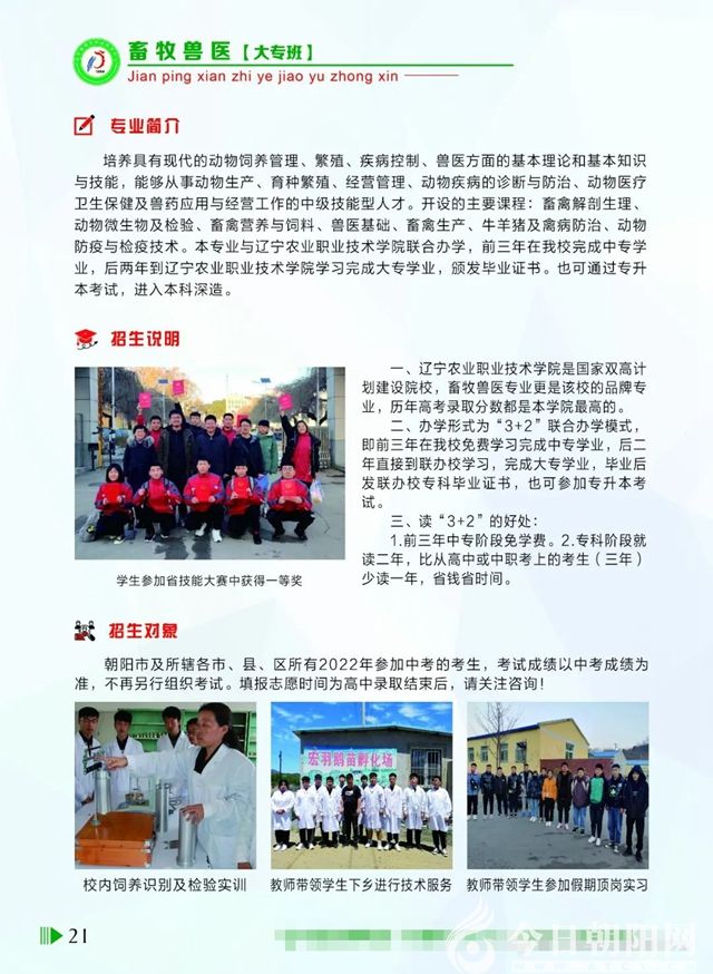 6月12日,本網(wǎng)編輯從遼寧省建平縣職教中心獲悉,該校2022年秋季招生工作已全面啟動,報名時間為2022年6月18日至8月18日。為方便廣大學(xué)生、家長及社會各界人士及時了解相關(guān)信息,本網(wǎng)特將招生簡章分享如下,歡迎關(guān)注轉(zhuǎn)發(fā)!
